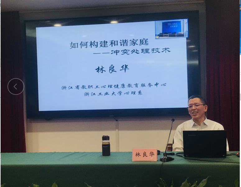 5月21日上午,由浙江省总工会主办,浙江省教育工会、浙江省教职工心理健康教育服务中心承办,浙江省职工服务中心、浙江工业大学协办的浙江省“职工阳光心理服务月”活动来到位于杭州市延安路的中国人民银行杭州中心支行。“中心”心理专家、浙江工业大学心理学系副教授林良华进行了主题为《如何构建和谐家庭——冲突处理技术》的心理讲座。通过现场观摩和网络直播形式,该行浙江地区近600名职工参与了本次学习。