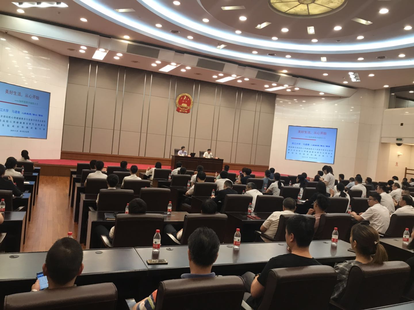 6月20日上午,浙江省人民大会堂人大会议厅灯火辉煌、座无虚席,不时传出课堂影像播放声和观众的呼应声。一场高水平的专家讲座——《美好生活从心开始,情绪管理与职场压力应对》正在进行,讲座由浙江省教职工心理健康教育服务中心专家团成员、浙江大学二级教授、博导马建青老师主讲。这是浙江省总工会、浙江省教育工会主办的“职工阳光心理服务月”系列活动的收官活动之一。