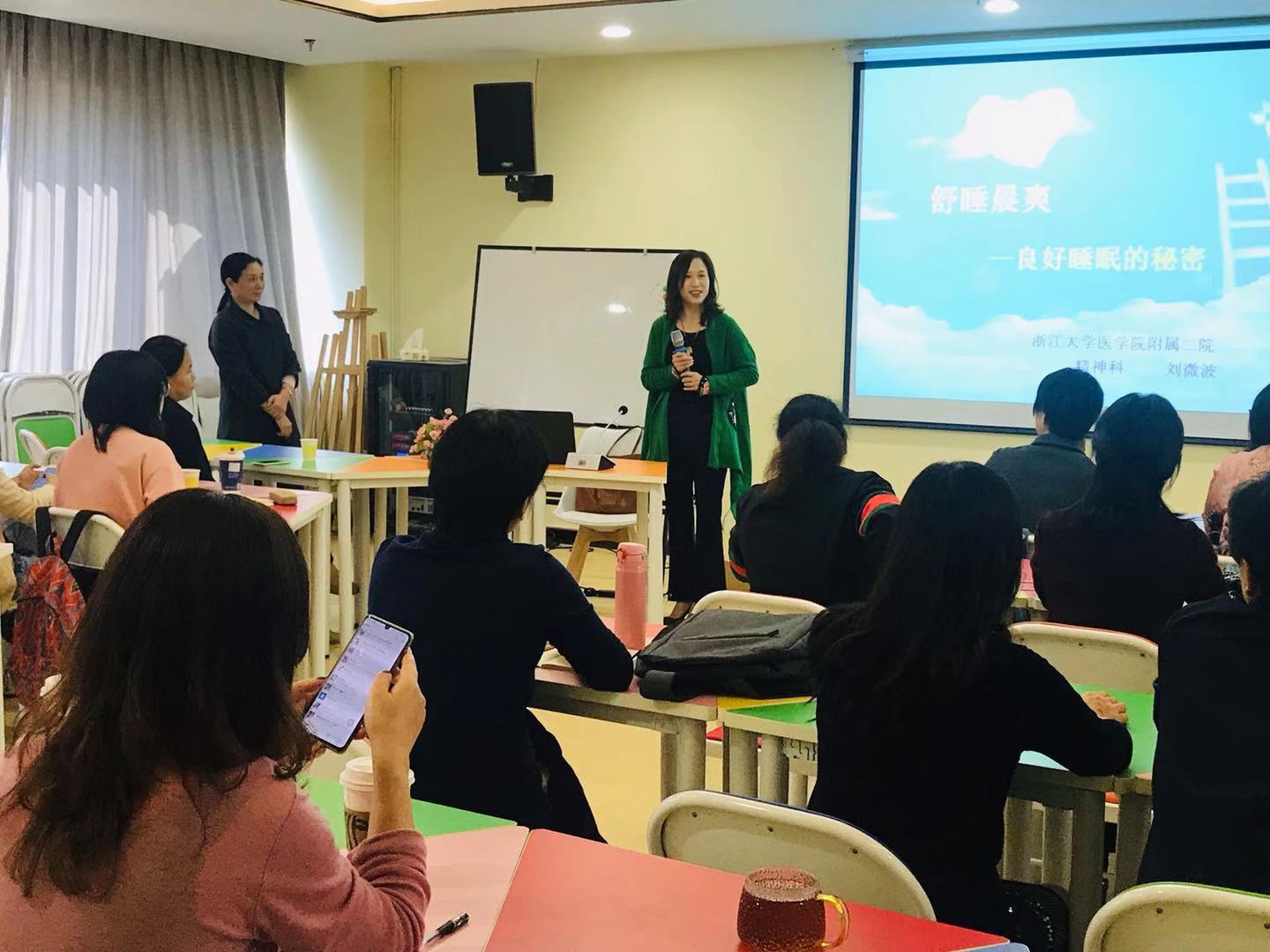 11月1日下午,浙江省教职工心理健康教育服务中心(以下简称“中心”)开展“良好睡眠的秘密”主题沙龙,沙龙由中心特聘专家、浙江大学第二附属医院精神科主任刘微波主讲,来自全省各行业的近40位职工参与本次沙龙学习。刘微波老师通过专业生动的讲解,让参与的职工们全方位了解睡眠机理,并解答了职工们在生活中与睡眠有关的种种困惑。