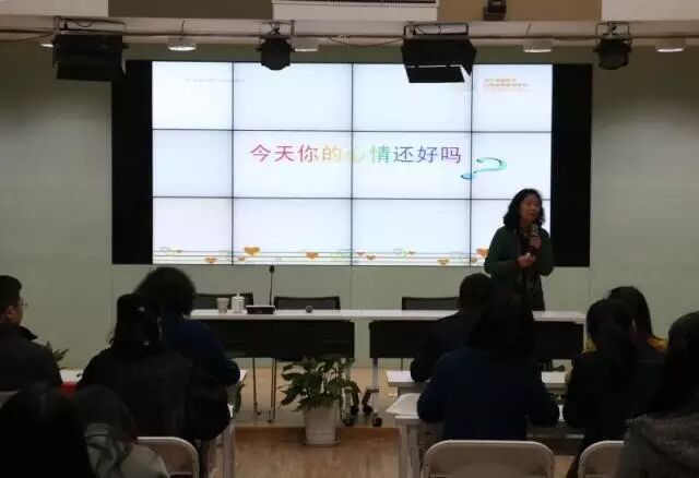 开讲前邢教授以“今天你的心情还好吗?”为话题,与老师进行了互动交流,迅速拉近了彼此的心理距离,创设一个宽松、亲近的氛围。