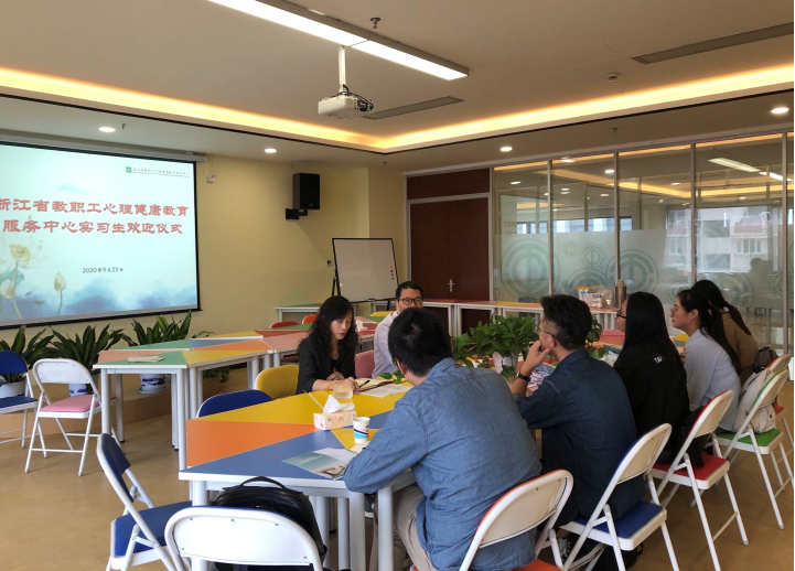 9月25日,浙江省教职工心理健康中心(以下简称中心)举办实习工作会议暨实习生欢迎仪式。中心副主任何桥、办公室主任孟婷婷以及浙江工业大学教育科学与技术院心理系主任汤玉龙等参加会议。