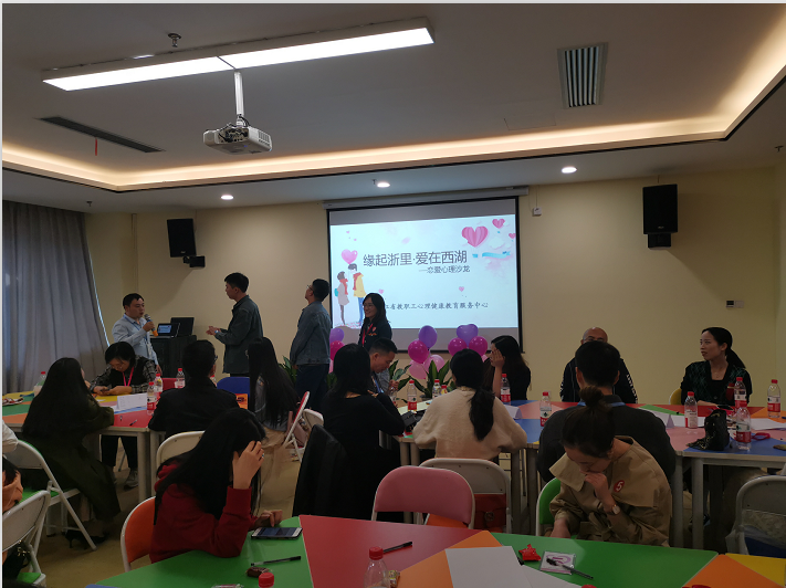 10月24日下午,由西湖区妇联主办,浙江省教职工心理健康教育服务中心及浙江省婚姻家庭咨询师协会联合承办的“缘起浙里∙爱在西湖”恋爱心理沙龙于浙江省教职工心理健康教育服务中心团体心理辅导室举行。来自全省各行各业的40余位职工代表参加该次活动。