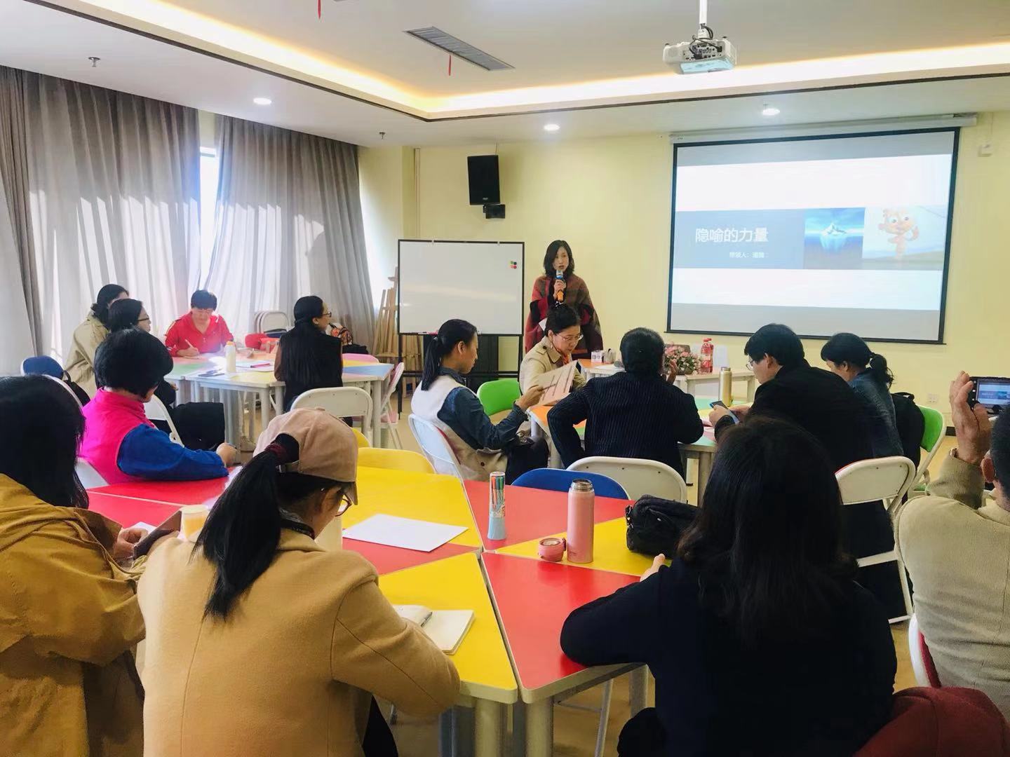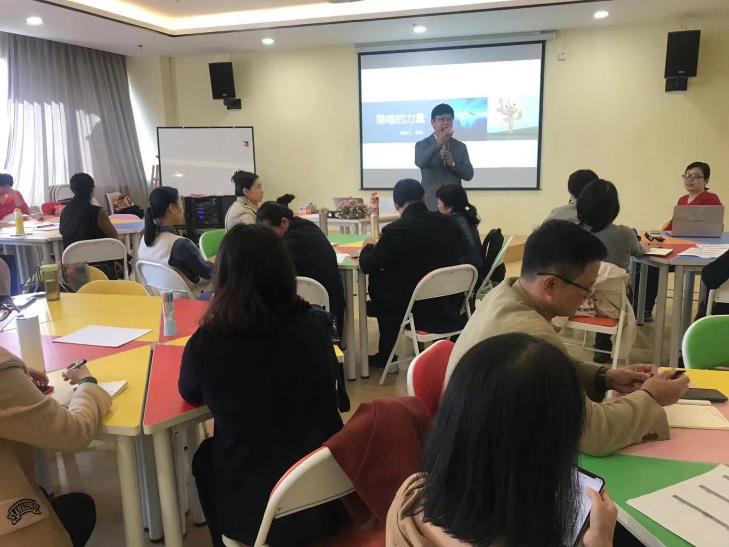 沙龙中,潘驰老师通过视频和案例,层层递进地阐述了何谓隐喻,隐喻在儿童教育、公众演讲、心理治疗以及现实生活工作场景中的作用机制。同时,潘老师指导职工们如何分步骤建构并创作隐喻故事:倾听案例困境、收集资料;对每一个困境描述中尽可能写下想到的治疗切入点,写出资源中可以实用的方法,用故事的某种角色替代问题; 决定隐喻故事的主要角色及相对角色;以找到故事主角为核心,构建故事脉络;用适当的情节把故事中的内容串联起来讲故事。