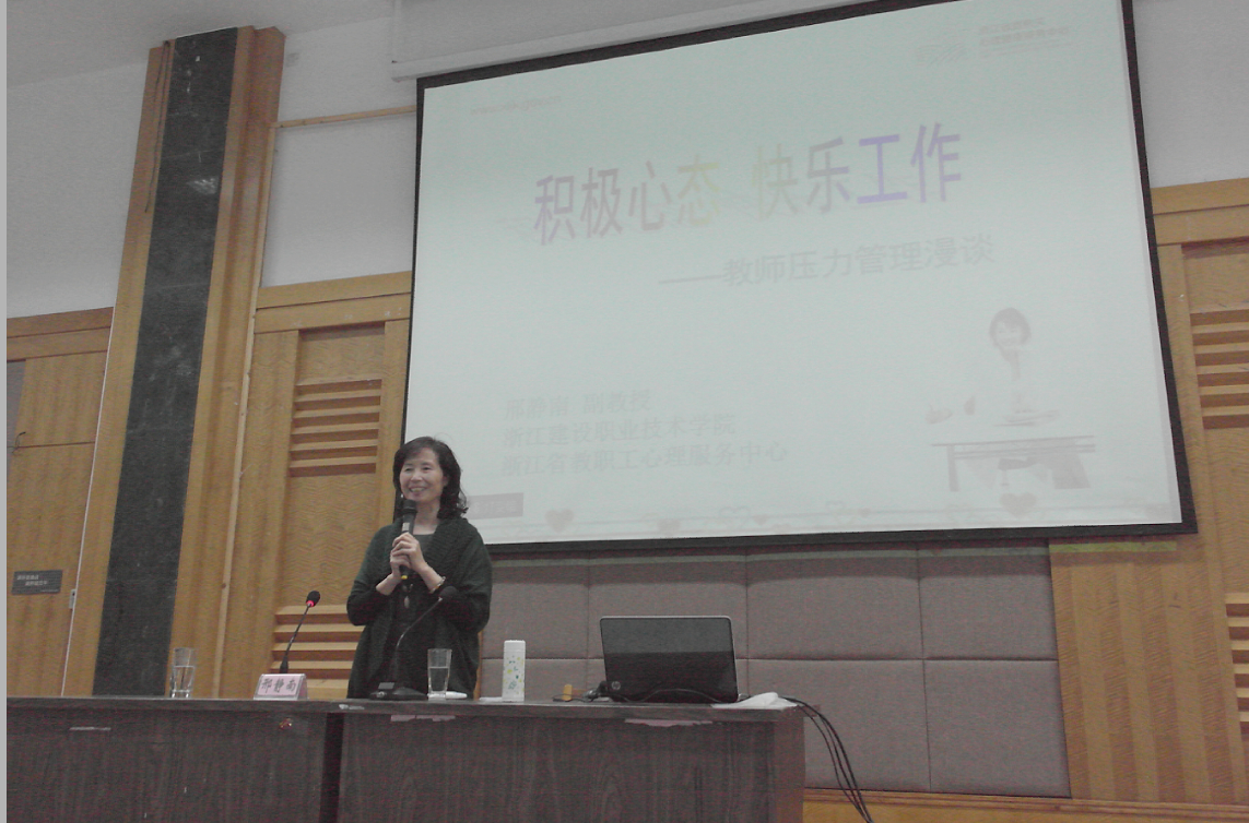 4月14日下午,浙江省教职工心理健康教育服务中心(以下简称“中心”)受绍兴越秀外国语学院邀请,开展了教师心理健康知识宣传普及的合作。“中心”专家邢静南副教授面向越秀外国语学院近百名老师们作了“积极心态,快乐工作——高校教师压力管理漫谈”的主题报告。