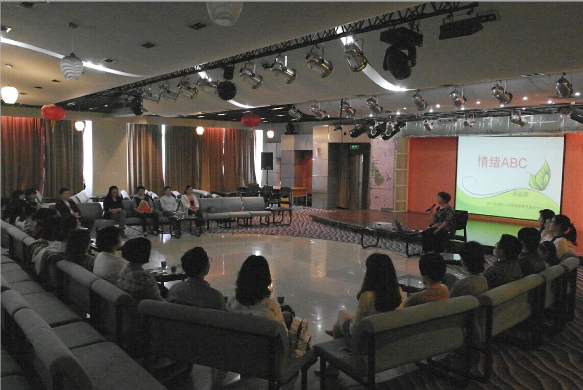 4月29日,浙江省教职工心理健康教育服务中心(以下简称“中心”) “幸福工作坊”第二期心理沙龙“走进我们的情绪世界”在浙江工业大学师生活动中心多功能厅举行。沙龙由“中心”特聘心理专家、杭州电子科技大学教授、国家二级心理咨询师郝丽萍老师主持,来自浙江工业大学、浙江理工大学、浙江工商大学、中国美术学院、浙江财经大学、浙江外国语学院、浙江机电职业技术学院、嘉兴南洋职业技术学院等近十所省内院校的80余位教职工参加了本次心理沙龙。