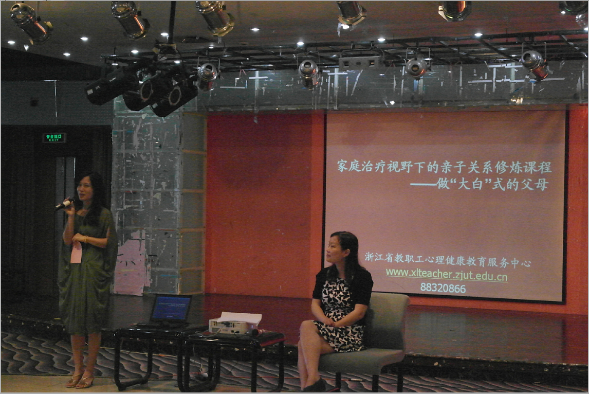 2015年6月28日,浙江省教职工心理健康教育服务中心在浙江工业大学举行了 “家庭治疗视野下的亲子关系修炼——做‘大白’式的父母”心理课程。课程邀请了同济大学心理咨询中心专家姚玉红主讲,来自浙江大学、浙江工业大学、宁波大学、浙江理工大学、杭州电子科技大学、浙江工商大学、中国美术学院等29所省内本科和高职高专院校的120位老师参与了本次课程学习。