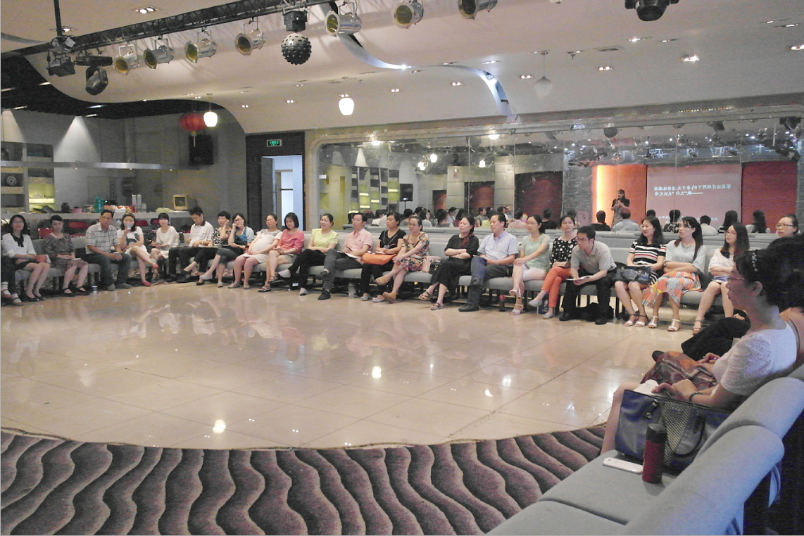 课程中,姚玉红通过生动幽默的语言向老师们介绍了家庭治疗中夫妻的二元关系和亲子的三元关系,并通过三人小组的三重角色扮演体验,让温暖的情感和科学的理论相结合,让老师们真切地感受到不同身份下全新的角色体验,发现问题的症结所在,增进了老师们对家庭中其他角色和自身角色的理解,从而学会更有效地履行自己角色的心理技术,以及拥有人性中重要的同理心。同时,姚玉红也结合自身丰富的咨询经验,引导老师们充分认识到家庭系统中循环的因果关系、“双重束缚”及“依恋”在孩子身心成长中的影响、不同家庭生命周期的发展任务、不同年龄阶段的孩子教养关键点、冲突情境下的夫妻沟通与亲子沟通,帮助老师们增进自身的觉察和体验,进一步修炼自身以执行健康的家庭功能。最后,姚老师邀请有心理困惑的老师进行了家庭治疗的现场个案访谈,让老师们观摩学习了如何进行家庭成员个人的内在心理构造与状态的分析,如何在家庭系统中聚焦于家庭成员的互动与关系,促进家庭系统的良性发展。