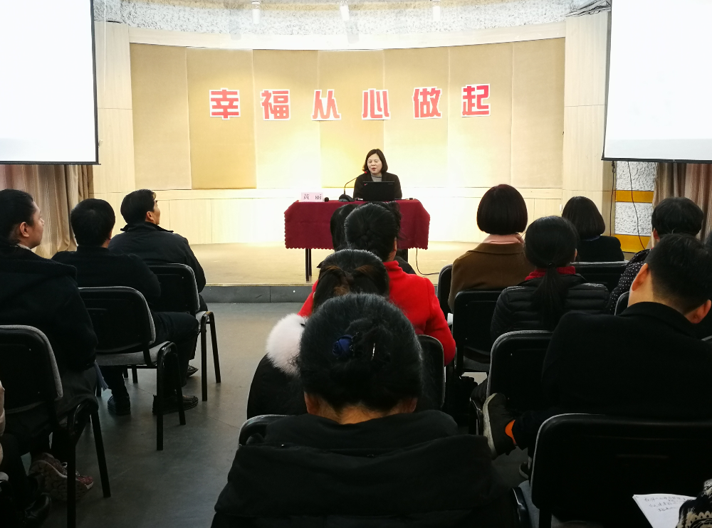 讲座的主题为“幸福生活从心做起”,黄老师用平实而亲切的语言向大家诠释了什么是幸福,指出幸福的四大标准在于:寻求快乐、投入工作、人生价值、成功,指导老师们测试自己的幸福指数。她引用生活中常见的案例,生动而幽默地说明寻求幸福的方法,浅显的语言娓娓道出深奥的人生哲理,引起大家的共鸣。老师们在繁忙的工作中静下心来,思考自己是否幸福,如何让自己得到幸福,都觉得受益匪浅。