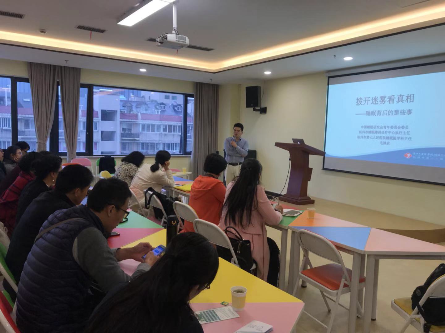 11月16日,浙江省教职工心理健康教育服务中心开展“拨开迷雾看真相-睡眠背后的那些事”主题沙龙,沙龙由杭州市第七人民医院(浙江大学医学院精神卫生中心)医学心理科(睡眠医学科)主任毛洪京主讲。来自全省的40余位教职工参与本次沙龙。