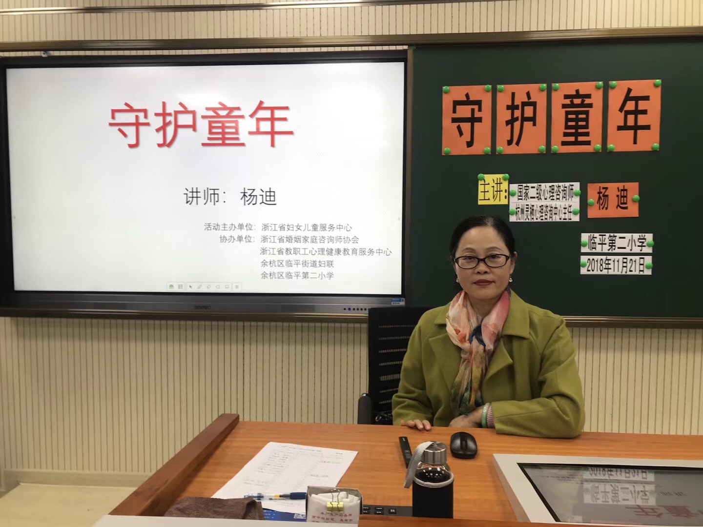 11月21日,浙江省教职工心理健康教育服务中心开展“守护童年”心理讲座,该场讲座由“中心”特聘心理专家杨迪通过现场直播的方式进行。余杭区临平二小2-6年级1200名学生家长参加了本次学习。