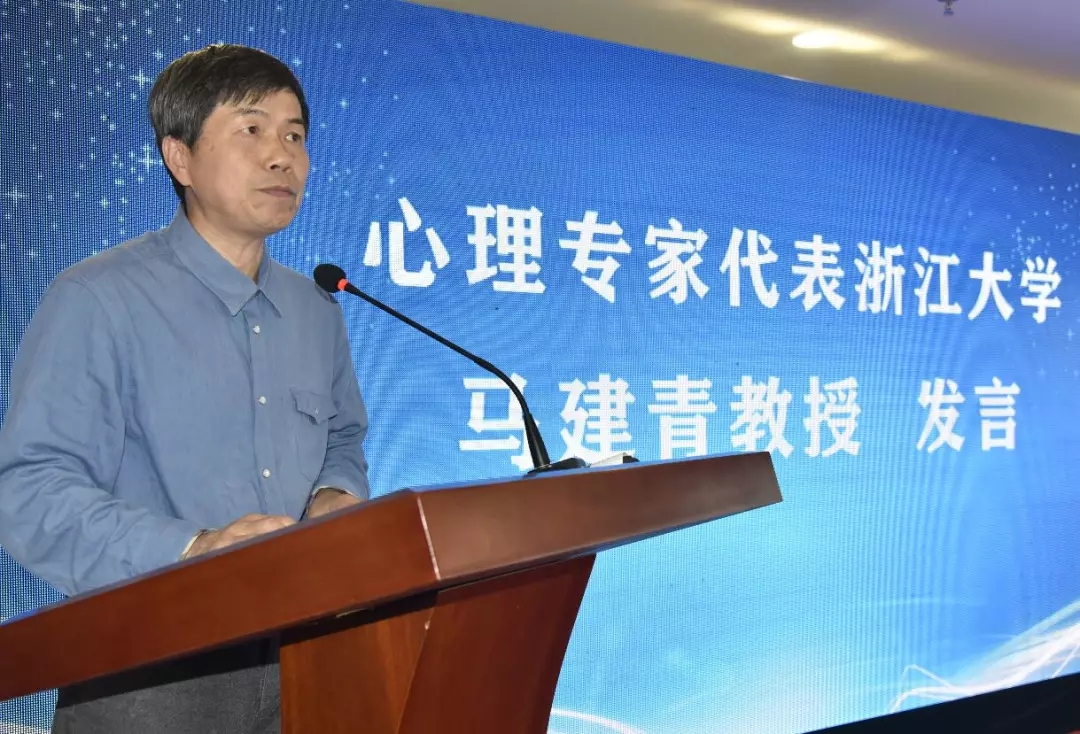 省教职工心理健康服务中心特聘专家、博士生导师、浙江大学马建青教授代表专家组讲话。