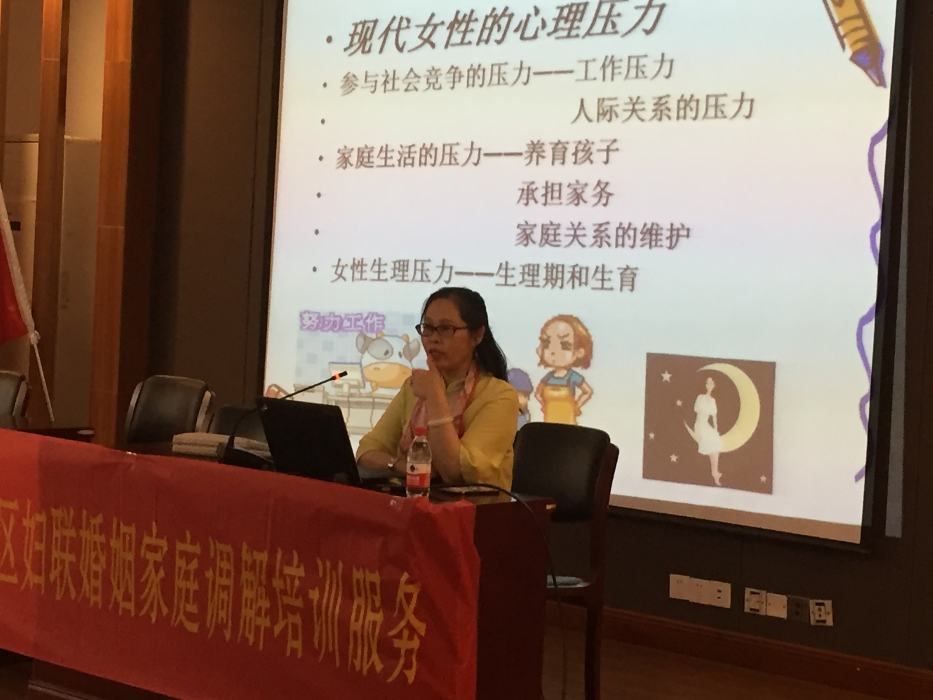 杨迪老师介绍,现代女性的心理压力主要来自三个方面:参与社会竞争的职场压力、养育孩子承担家务的家庭生活压力、生理期和生育的女性生理压力。过大的压力,使女性的身体进入紧张状态,产生焦虑或抑郁的情绪。同时,也极易引起内分泌失调、过敏性头疼、高血压等躯体疾病,出现注意力不集中、记忆力下降、理解力和创造力下降等生理现象,使人变得敏感、易怒,易与他人发生冲突,对工作和生活均造成较大的影响。