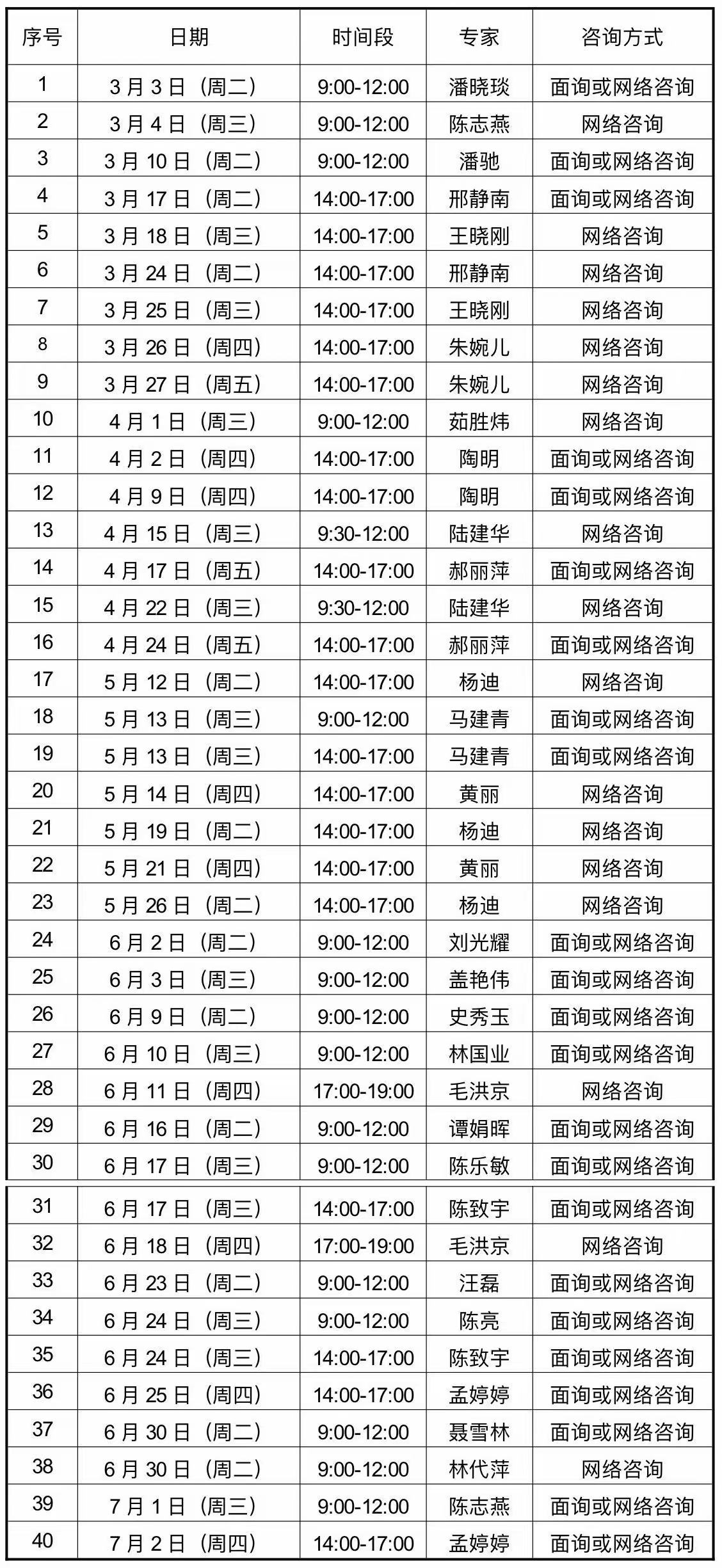 咨询方式:面询和网络咨询(具体可在预约时确定)